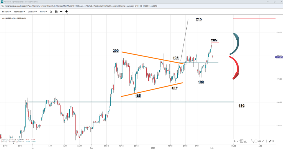 Analysts expect EPS to rise to $2.13 from $1.64, with sales growing by 12% to $96.7 billion. As Google aggressively pursues AI integration, investors will closely monitor the comments of CEO Sundar Pichai on the potential impact of DeepSeek and its influence on demand for storage and cloud computing, which could affect the company's star unit. Alphabet will issue its first guidance for 2025, with analysts projecting an EPS of $9.00 on revenues slightly over $360 billion.