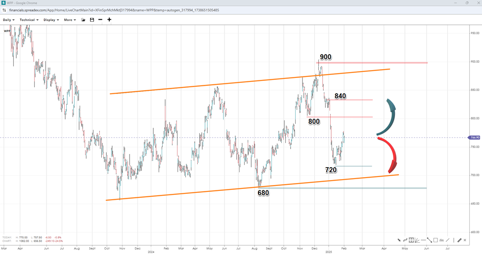 After hitting a top in mid-December, WPP saw a pullback in its stock price, but despite erasing all gains from last year, the company still managed to stage a recovery in late January. This raised questions about the potential for further upside ahead of its upcoming update. While WPP gained attention for its push to return employees to the office, investors seemed more concerned about the challenges posed by AI, slowing advertising demand and increased competition.