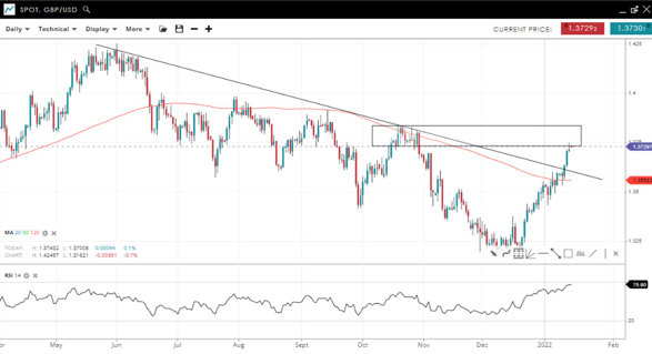 GBP/USD traders continue to shrug off political developments with bigger considerations at play – namely Omicron and rising interest rates to combat inflation. The UK is reported to be well ahead of other developed countries in the race against Omicron.