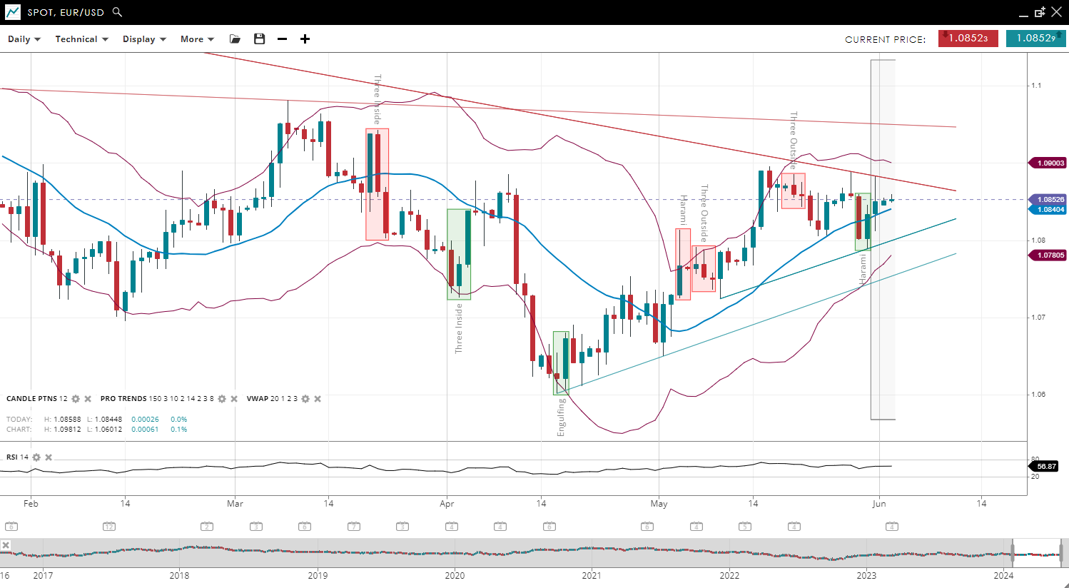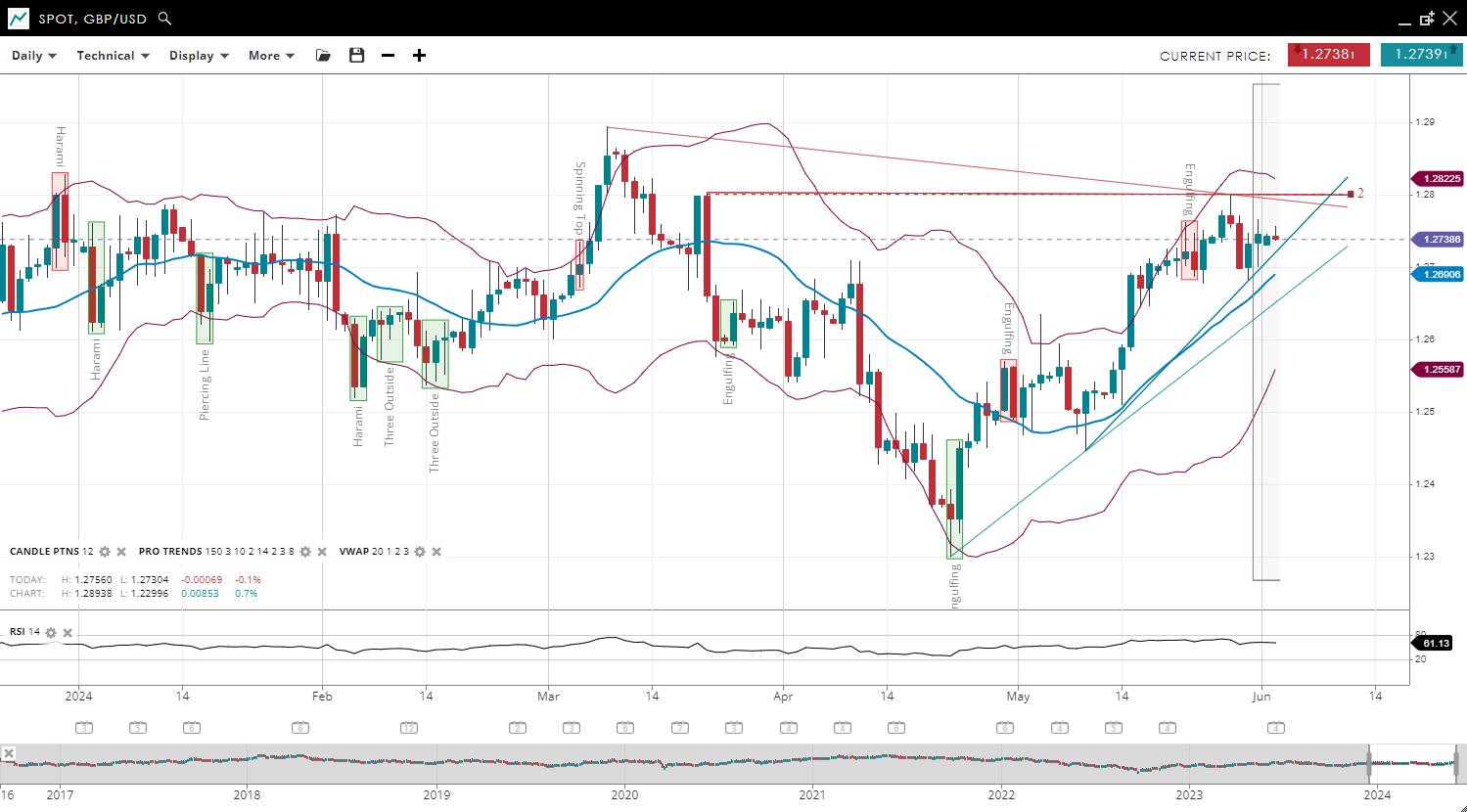 NOTE: These charts use the ‘Pro Trading Tools’ available on the SpreadEx trading platform. To use them, log in to your SpreadEx Financials Account and click ‘Technical’ from the menu on any chart.