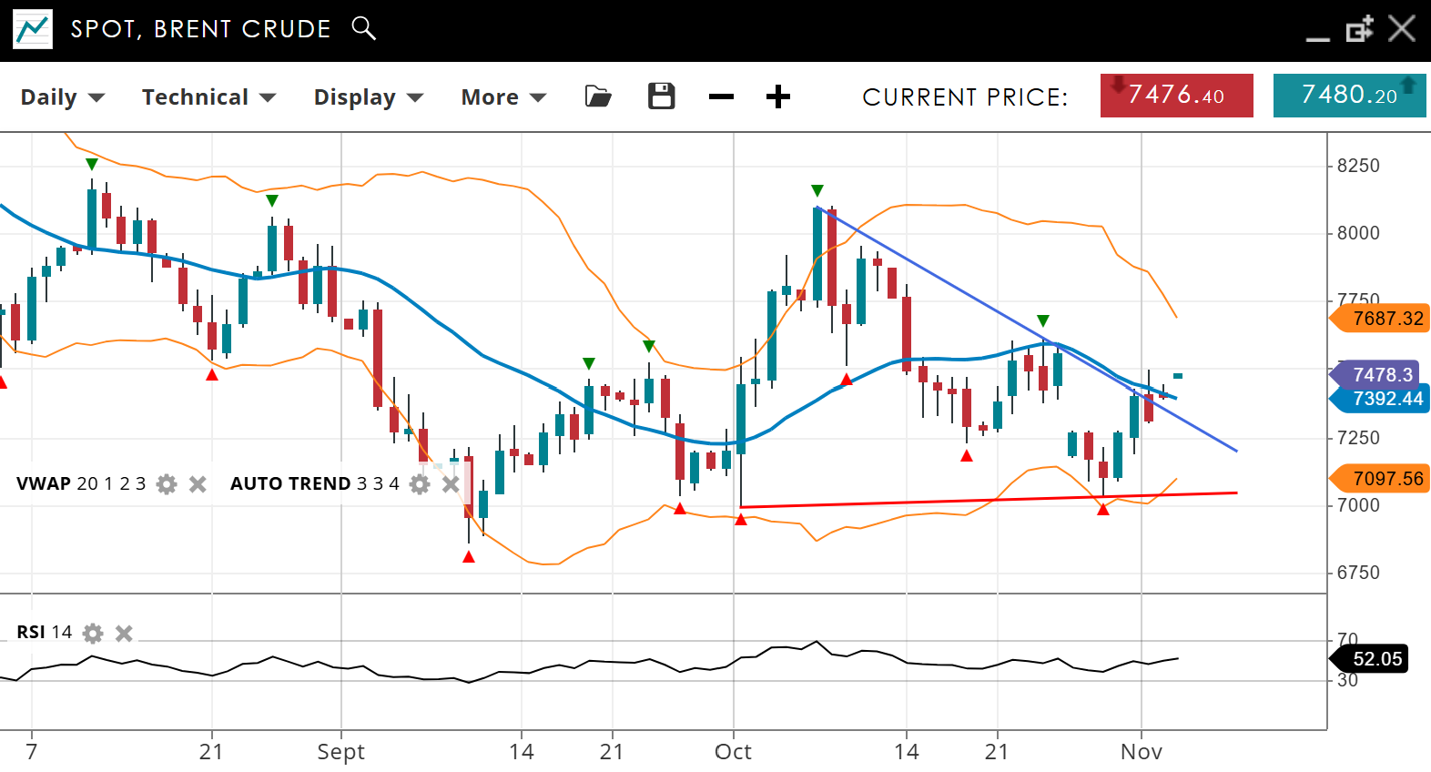| Brent Crude | Neutral | Consolidation | 7478 | 7392 | 7097 | 7687 | 52 |