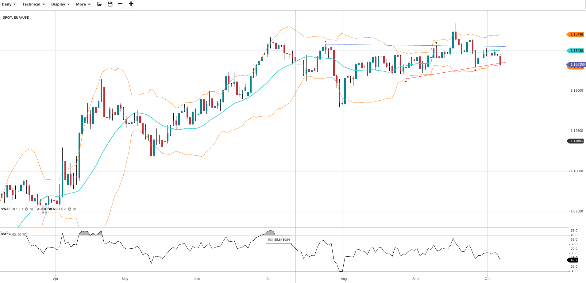 NOTE: These charts use the ‘Pro Trading Tools’ available on the SpreadEx trading platform. To use them, log in to your SpreadEx Financials Account and click ‘Technical’ from the menu on any chart.