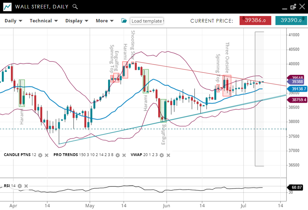| Wall Street | Bullish | Impulsive | 39390 | 39138 | 38759 | 39388 | 60 |