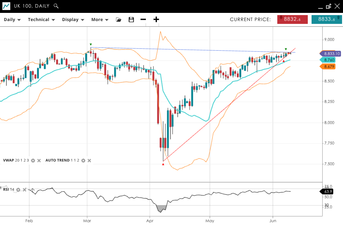 NOTE: These charts use the ‘Pro Trading Tools’ available on the SpreadEx trading platform. To use them, log in to your SpreadEx Financials Account and click ‘Technical’ from the menu on any chart.