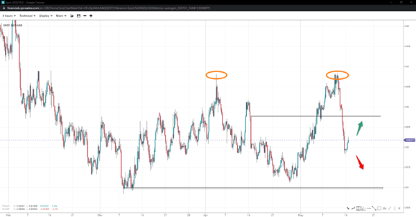 Kiwi formed a double top at 0.6380 and reversed under 0.62 temporarily. Further demand for shorts might provoke a move toward 0.61 but requires the break of 0.6182 first. A respite to 0.63 might be seen if bulls can reclaim 0.6275.
