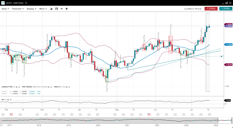 NOTE: These charts use the ‘Pro Trading Tools’ available on the SpreadEx trading platform. To use them, log in to your SpreadEx Financials Account and click ‘Technical’ from the menu on any chart.
