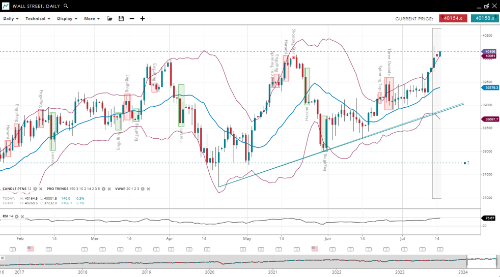 | Wall Street | Bullish | Impulsive | 40156 | 39379 | 38697 | 40061 | 75 |