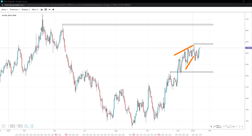 Silver prices remain somewhat mixed, below 24.80, with 22.40 on the opposite side of the market. If bulls recapture the top, it could send the commodity towards 26.50, but the ending wedge could lead to a steep decline.