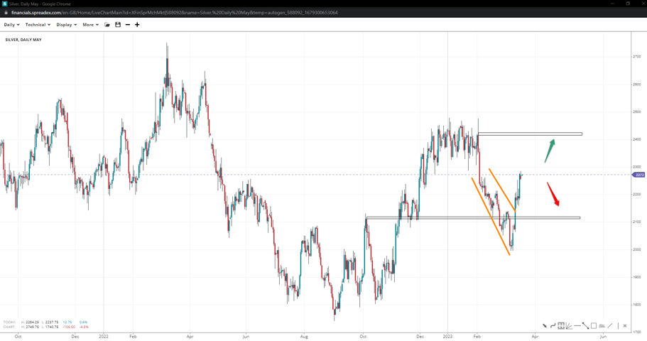 Gold prices might have completed a flag or pennant pattern down at $1810/oz and headed to the 2080 ceiling should bulls regain control of $2050/oz. $1975/oz remains a weekly support bears need control of to push prices deeper to the lower 19s.