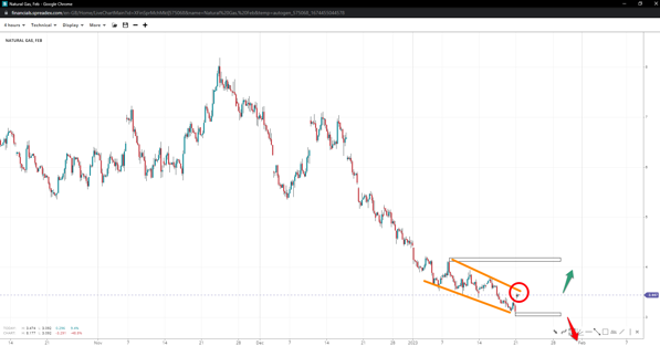 Natural gas remains heavily downward but recently printed a wedge pattern with a trough at 3.10. If prices break above the upper trendline, the commodity could revisit 4.20, but in case bulls receive a rejection, the trend may recommence past 3.10 and towards 2.00.
