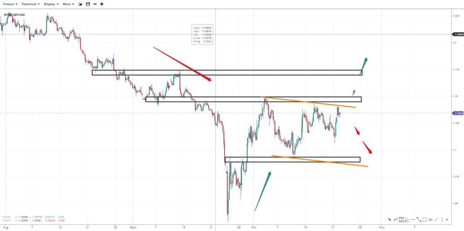 GBP/USD remains in a bullish pennant pattern since the decline to 1.1060 failed to fall below 1.0930. The pound needs a break past 1.1500 for a chance at 1.1750, with the 1.1400 or the upper descending trendline ahead. A reversal would bring 1.1060 and 1.0930 back on the cards.