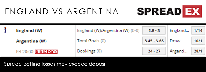 Ellen White made it 2-0 not long before the break, and left England pretty comfortable heading into the 2nd half. Claire Emslie gave the Scots a lifeline with 11 minutes to go, but it came to nought, FIFA’s world no. 3s left Nice with a nice 2-1 win and all 3 points. Even though they only managed a draw in their opening game, Argentina will likely be pretty happy with the result, given that it marked their first ever point in the Women’s World Cup. Japan – 2011 champions and 2015’s beaten finalists – were easily the favourites heading into the Parcs des Princes. Yet the Argentine women managed to keep Japan out, resulting in the only goalless draw of the competition so far. Looking at the tournament as a whole, Spreadex have a bounty of Lioness-specific spreads to sink your teeth into. Goals Scored sits at 10.5-12, after the 2 they picked up against Scotland, with Bookings at 46-52 and Corners at 34.25-38.25 (they currently sit at 9). From one historic rivalry to another, England – who fancied to at least get to the semi-finals once again, at an Outright Index spread of 44-48 and a fixed odds price of 6/1 – will be looking to win Group D, given that would set up an ostensibly winnable last-16 fixture against one of the 3rd place nations. They should have it in them to do so, easing the pressure on their final group game against Japan, with Spreadex offering an England/Argentina Goal Supremacy spread of 2.6-2.8, alongside an average target price of 3.35-3.55.