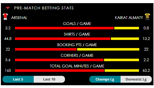 The form guide here couldn't be more opposite, with Arsenal winning all of their Champions League fixtures thus far this season, while Kairat have lost six and drawn one of their seven attempts.